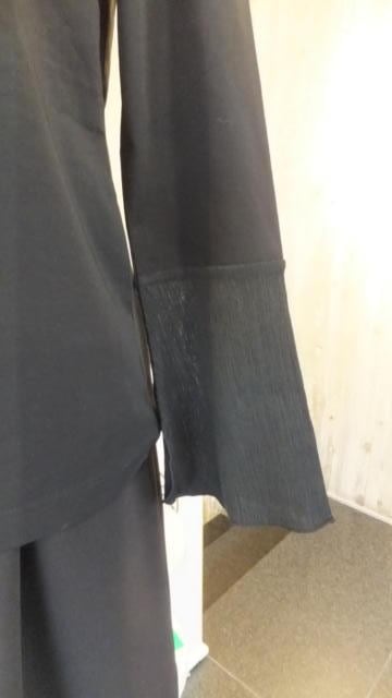 コットン94% ポリウレタン6%のハイネックのインナーでカフス部分がコットン64%ポリエステル34%の楊柳で、ラッパの袖口がオシャレです。